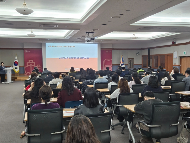 정윤식 회계과장은 “계약업무는 관련 법령과 절차가 복잡해 신규 직원들이 업무를 수행하는 데 어려움을 겪는 경우가 많다.”라며, “이번 교육을 통해 지원들이 계약업무의 기본 원칙과 실무 절차를 정확히 이해하고 공정하고 투명한 계약행정을 추진하는 데 도움이 되길 기대한다.”라고 밝혔다.