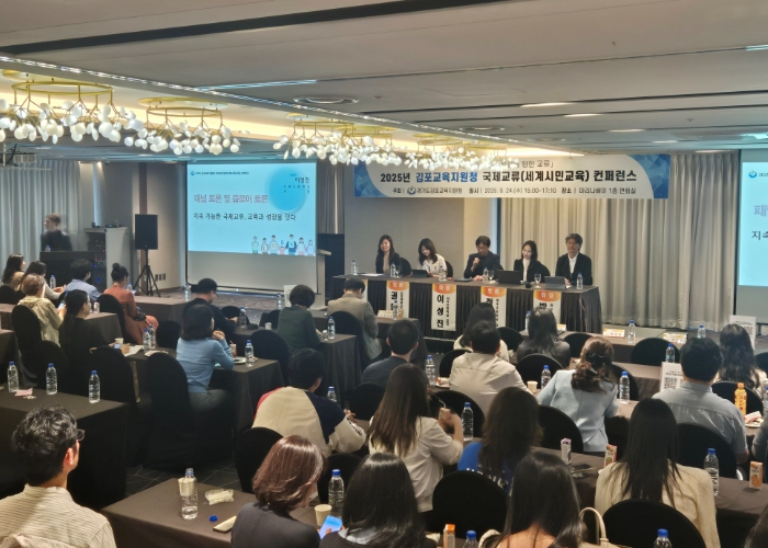 [뉴스앤톡] 경기도김포교육지원청은 9월 24일, 김포 마리나베이에서 『2025 김포교육지원청 국제교류협력 콘퍼런스』를 성공적으로 개최했다고 밝혔다. 이번 행사는 국내외 학교 현장의 국제교류 성공 사례와 효과적인 운영 방안을 공유하여 교원들의 국제교류 역량을 강화하고, 교육공동체 간 지속 가능한 협력 기반을 마련하기 위해 추진됐다. 이날 행사에는 김포 관내 유·초·중·고등학교 교원 100여 명이 참석해 높은 관심을 보였다.