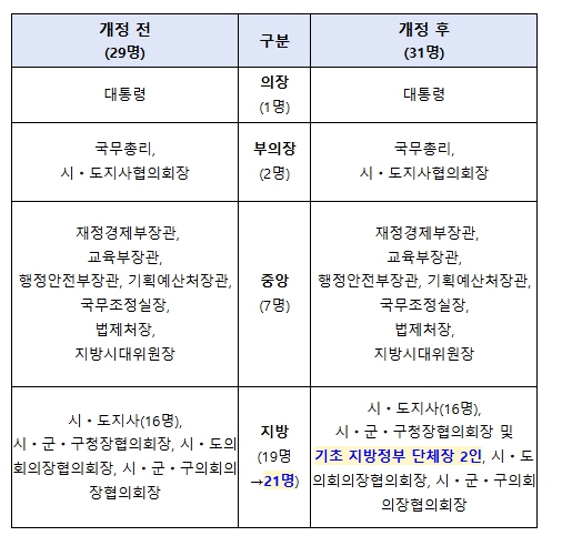 | ▲ 시행령 개정 전후 중앙지방협력회의 구성원 변화 |