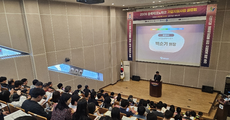 [뉴스앤톡] (재)충북테크노파크(원장 박순기)는 4월 16일 선도기업관 세미나실에서 개최한 ‘2026년 충북테크노파크 기업지원사업 설명회’를 성황리에 마쳤다고 밝혔다.