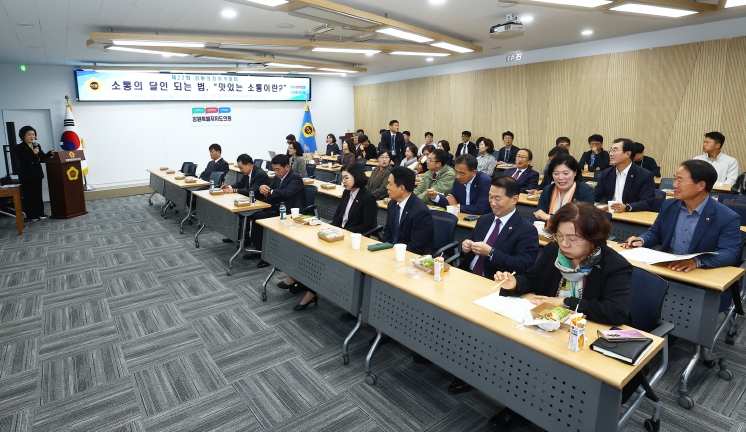 현직 도의원 49명 전원과 강원특별자치도민, 의회사무처 직원을 대상으로 실시하는 이번 교육에서는 백현주 연사(방송인)를 초청해 ‘소통의 달인이 되는 법, 맛있는 소통이란?’을 주제로 강의를개최했다.