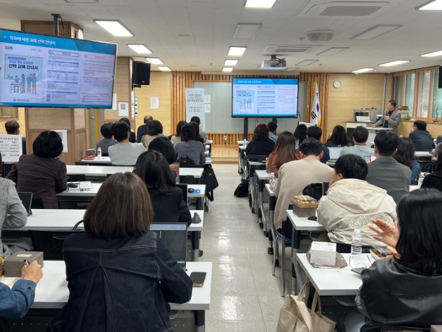이번 연수는 학생의 적성과 진로에 따른 학업 경로를 전문적으로 안내할 수 있도록 고등학교 교사들의 설계 지도 역량을 높이고자 마련됐다.