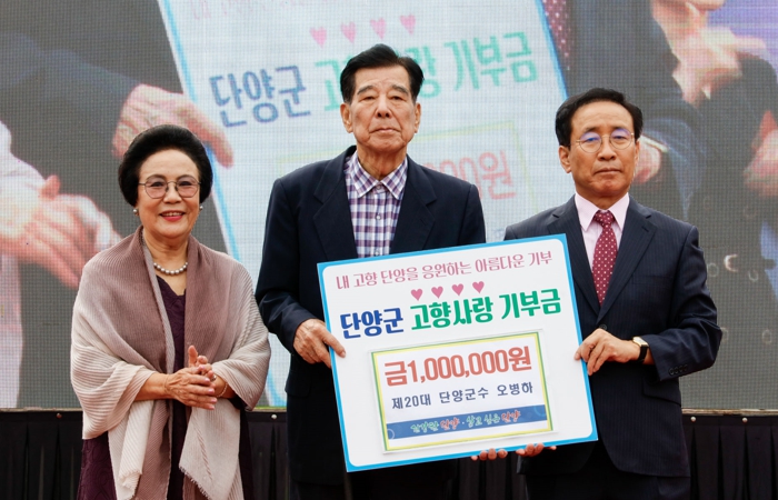 [뉴스앤톡] 충북 단양군은 지난 19일 단양 공설운동장에서 열린 신단양 이주 40주년 기념식에서 제20대 단양군수를 역임한 오병하 전 군수가 고향사랑기부금 100만 원을 기탁했다고 밝혔다.