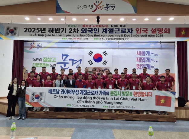 [뉴스앤톡] 문경시는 10월 24일 외국인 계절근로자 28명과 관내 농업인이 참여한 가운데 농업기술센터에서 2025년 하반기 2차 외국인 계절근로자 입국설명회를 개최했다.