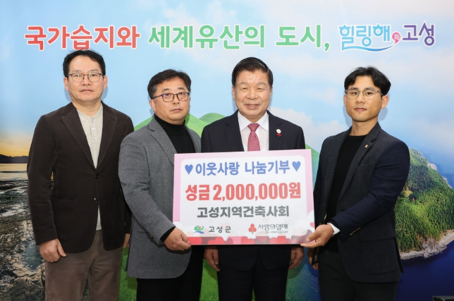 | ▲ 이웃사랑 나눔기부 대한건축사협회 고성지역건축사회, 성금 200만 원 전달 |