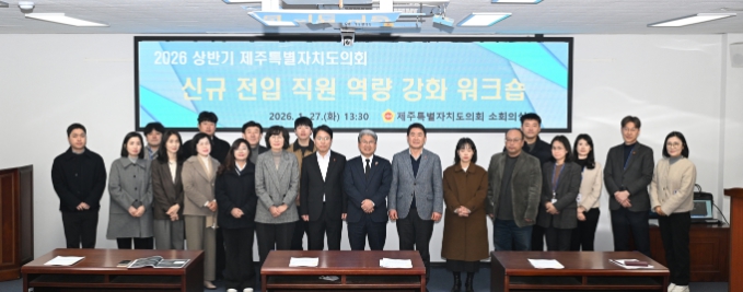 [뉴스앤톡] 제주특별자치도의회 의회운영위원회는 지난 1월 27일, 도의회 의사당 소회의실에서 2026년 상반기 정기인사로 전입한 직원 및 실무 역량 배양이 필요한 직원들을 대상으로 ‘역량 강화 워크숍’을 개최했다.
