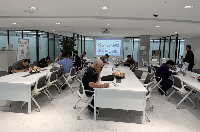 [뉴스앤톡] 경기도일자리재단은 26일 수원에 위치한 남부사업본부에서 대한민국 육·공군과 함께 ‘Restart! 4050육공 매칭데이’를 개최했다. 이번 행사는 군 전역 후 새로운 인생 2막을 준비하는 40~60대 중장년 경기도민에게 실질적인 취업 기회를 제공하기 위해 마련됐다.
