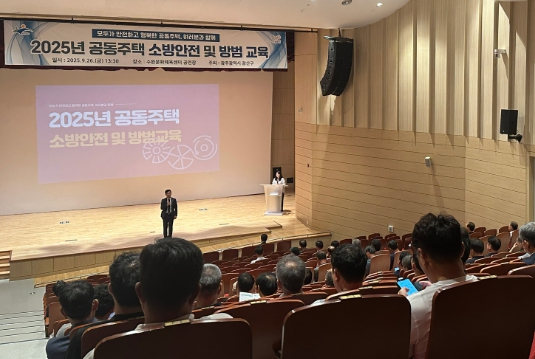 [뉴스앤톡] 광주 광산구는 26일 수완문화체육센터에서 지역 의무 관리 대상 공동주택 193단지의 시설물 안전관리책임자, 경비책임자 160여 명을 대상으로 소방안전 및 방범 교육을 했다고 밝혔다.
