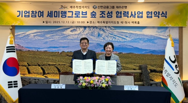 제주도는 12일 제주은행과 ‘세미맹그로브 숲 조성’업무협약을 체결했다고 밝혔다.