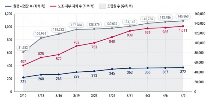 [뉴스앤톡] 고용노동부는 개정 노동조합법 시행(’26.3.10.) 이후 1개월여 간 현장상황 파악 및 지도를 위해 원청 사업장에 대한 하청 노조의 교섭요구 현황 등을 확인·집계해 왔으며, 법 시행 1개월이 되는 4월 10일, 그간의 집계현황을발표하면서 운영 상황도 함께 점검했다.