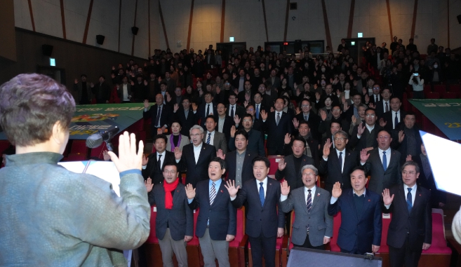 오영훈 도지사를 비롯해 이상봉 도의회 의장, 김광수 교육감과 정당‧기관‧단체 등 25개 대표와 말산업·에너지·해양 등 이전 대상기관 유관단체 등 150여 명이 참여한 가운데 범도민 유치 추진체계가 공식 가동됐다.