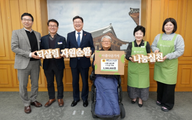 [뉴스앤톡] 전북특별자치도의회는 18일 의장실에서 하나예술창작센터의 장애인 예술 창작활동 지원과 노후 시설 보완 등에 활용해 달라며 기부물품 바자회 수익금 330만 원을 전달했다.