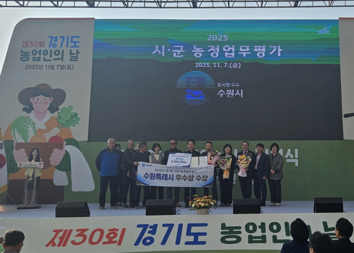 [뉴스앤톡] 수원특례시가 경기도 시군 농정업무평가에서 우수상을 받았다. 시상식은 7일 국립농업박물관 광장에서 열렸다.