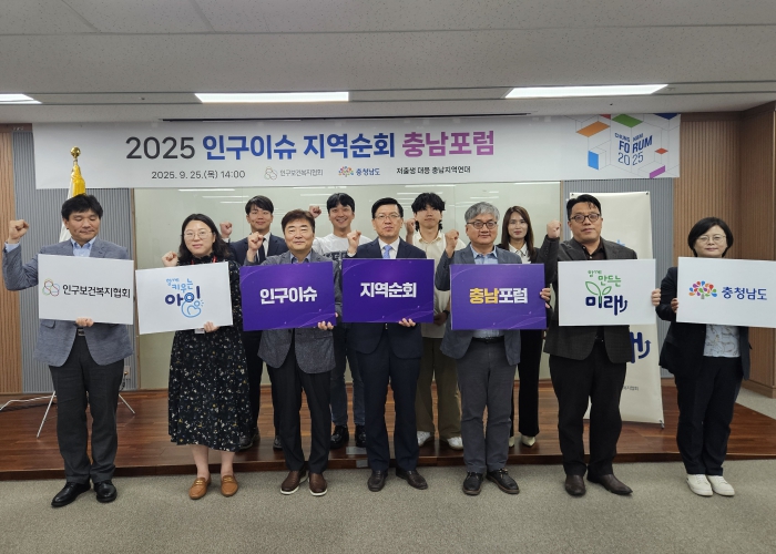 [뉴스앤톡] 충남도와 인구보건복지협회는 25일 도의회 회의실에서 ‘2025 인구이슈 지역순회 충남포럼’을 개최했다.