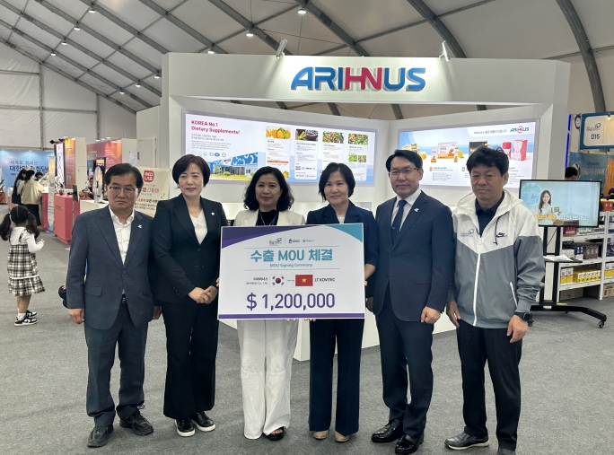 이날 수출협약을 체결한 아리너스는 독자적인 개별인정형 원료를 출하하고, 다종의 특허를 가지고 있는 제천 소재 건강기능식품 기업으로, 조직위가 도입한 산업관 참여기업 해외 바이어 개별초청 지원사업을 적극 활용, 평소 자사의 강황 제품에 관심을 보이던 베트남 바이어를 엑스포 산업관에 초청했다.