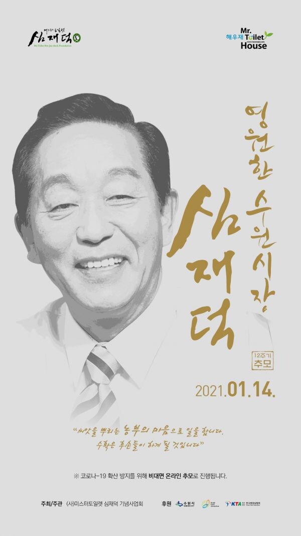 ㈔미스터토일렛심재덕기념사업회는 매년 심 전 시장의 기일에 추모식을 진행했으나 올해는 코로나19 확산 예방을 위해 비대면 방식으로 온라인 추모를 기획했다.