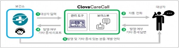 ‘네이버 클로바 케어콜’은 능동감시 대상자에게 하루 2차례 자동으로 전화를 걸어 발열을 비롯한 코로나19 증세를 확인하는 것이다.