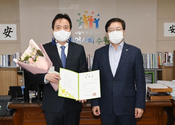 염태영 수원시장은 2일 집무실에서 구태환 예술감독에게 위촉장을 수여했다.
