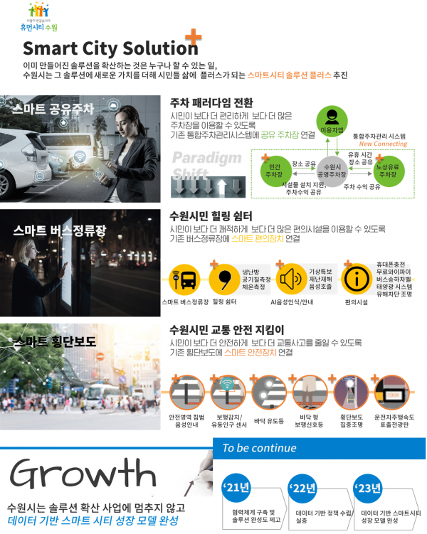 이어 “시민들이 스마트 버스정류장, 스마트 횡단보도, 스마트 공유주차를 이용하며 수원시가 스마트한 도시로 변화되는 것을 체감할 수 있을 것”이라고 기대했다.