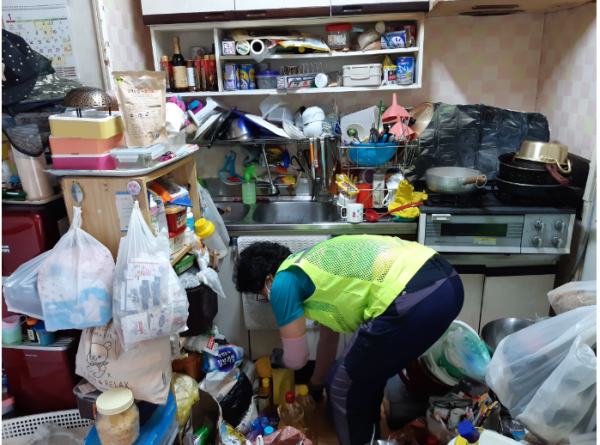 배우자가 사망한 뒤 홀로 거주해 온 주민 A씨는 사용하지 않는 오래된 장롱과 고장 난 세탁기 등 세간은 물론 폐지와 음료수병 등을 쌓아두고 지냈다.