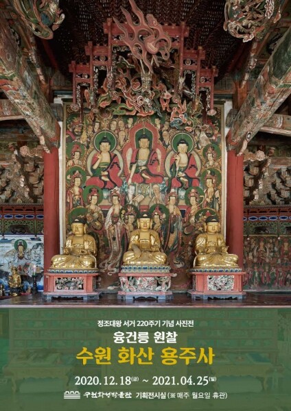 사진전은 정조대왕 건릉 수원 화산 용주사 여민동락의 용주사 등 3부로 구성된다.