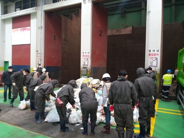 2월 22일부터 36일 동안 자원회수시설에서 진행된 소각용 생활쓰레기 표본 검사에는 44개 동 주민 375명이 참여해 종량제 봉투에 든 내용물을 점검했다.