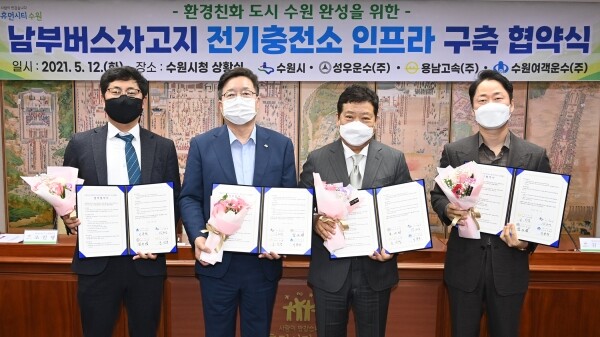 수원시는 12일 오후 2시30분 수원시청 상황실에서 ‘남부버스차고지 전기충전 인프라 구축 협약식’을 개최했다.