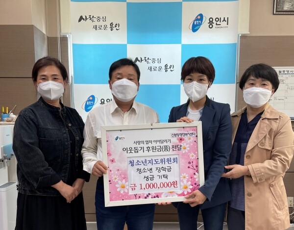 이날 전달한 장학금은 청소년지도위원회가 신봉도시개발지구 내 유휴 농지를 활용해 운영하고 있는 주말농장 분양 기금으로 마련했다.
