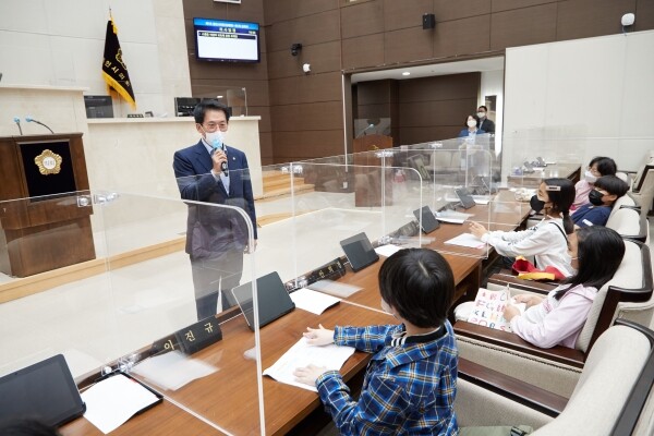 학생들을 만난 김기준 의장, 김상수 부의장, 안희경 의원은 “이 프로그램을 참여한 학생들이 자신뿐 아니라 학교와 지역사회의 미래를 위한 정책수립 과정에 주체적으로 참여하는 민주시민으로 성장하길 희망한다”고 말했다.