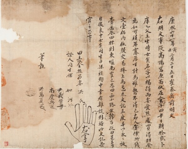 1722년 밭 주인 김진창의 아내 홍씨가 최태악에게 밭을 팔며 작성한 계약서인 ‘홍씨 밭 매매 명문’, 전답·가옥 등 부동산 거래·공증 서식 용례 등 조선 후기 민간에서 통용되던 문서들의 서식 용례를 모아놓은 ‘유서필지’ 등이 전시된다.