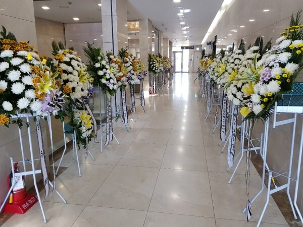 연화장 장례식장에서는 매년 1만 8000여 개의 3단 근조화환이 폐기되고 있다.