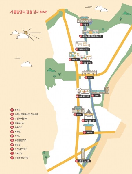수원시 관계자는 “정조의 애민정신으로 사통팔달 이어지는 물자와 사람이 활발하게 오가는 세 번째 인문기행 코스를 통해 역동적이고 활기찬 수원을 느껴보시기 바란다”고 말했다.