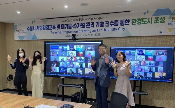 이번 온라인 연수는 지난해 수원시국제교류센터와 수원시가 함께 제안한 ‘시민환경교육 및 폐기물·수자원 관리 기술 전수를 통한 환경도시 조성 연수사업’이 2021년 한국국제협력단 정부 부처 제안 글로벌 연수사업으로 선정되면서 진행됐다.