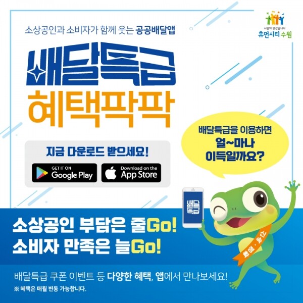 [뉴스앤톡] 수원시가 공공배달앱 ‘배달특급’을 운영하는 경기도주식회사와 손을 잡고 코로나19 사태 장기화로 어려움을 겪는 소상공인을 지원한다.