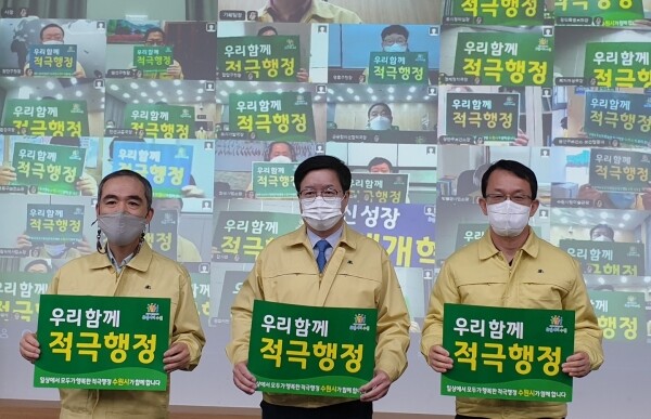 수원시는 올해 ‘공직사회의 실질적 변화와 시민의 확실한 체감’을 비전으로 하는 ‘2021 적극행정 실행계획’을 수립해 추진해 ‘적극행정’을 선도하고 있다.