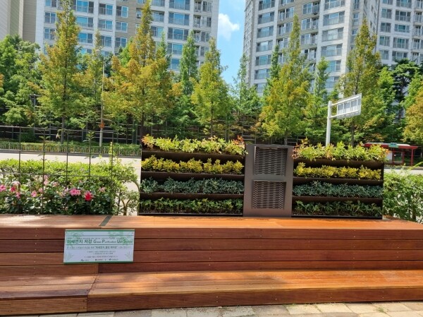 7월 27일 설치를 완료한 색동어린이공원 앞 GPUS 모델은 식물을 활용한 미세먼지 저감 기술로 미세먼지 측정·물리정 정화 모듈·생태 모듈·IoT 유지관리 모듈의 다중 결합형이다.