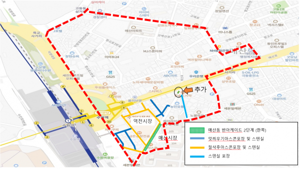 ‘매산동 도시재생 뉴딜사업’의 하나로 진행되는 이번 사업은 ‘역전시장 주변 이면도로·골목길 정비’와 ‘매산시장 반아케이드 2단계 구간 공사’로 이뤄진다.