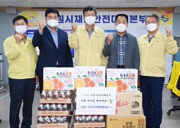 수원시 주민자치위원장협의회는 31일 오전 10시30분 수원시 재난안전대책본부를 방문해 과일·과자·커피 등 50만원 상당의 간식을 전달했다.
