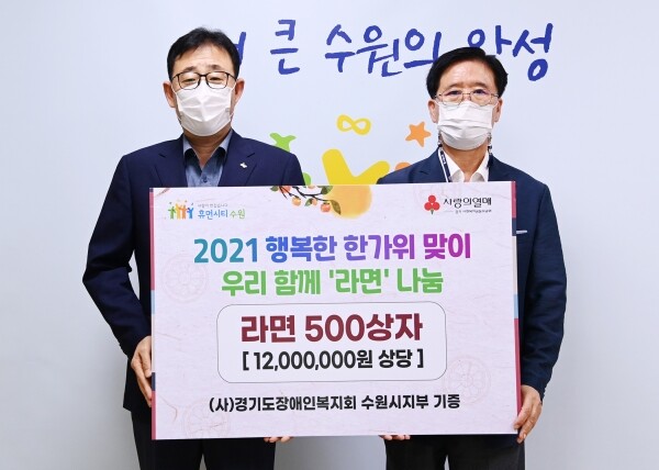 라면은 장안구청, 권선구청, 팔달구청, 영통구청 등 4개 구 사회복지과를 통해 국민기초생활수급자 중 장애인에게 전달할 예정이다.