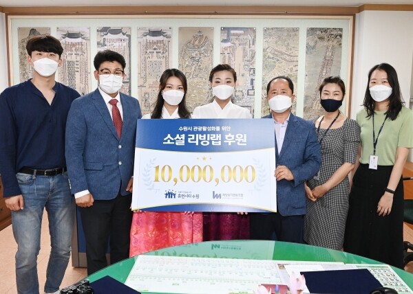 문상철 이사장은 협약식 후 수원 청년 관광홍보모델 대표에게 후원금 1000만원을 전달했다.