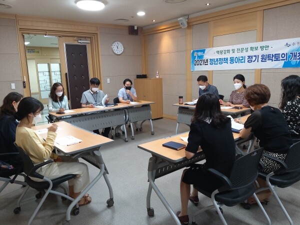 수원시는 15일 오전 11시 시청 소회의실에서 ‘2021년 수원형 청년정책 동아리 2차 원탁 토의’를 진행했다.