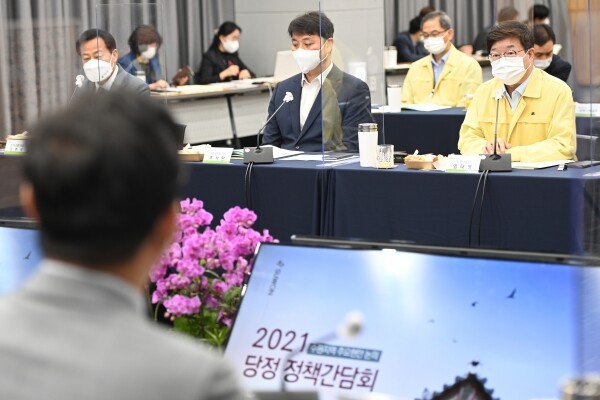 염태영 시장은 16일 수원시청 중회의실에서 열린 ‘수원지역 2021년 3분기 당·정 정책간담회’에서 “수원시를 비롯한 4개 특례시가 행정안전부와 ‘특례시지원협의회’를 구성해 특례 사무 확보를 위해 힘을 쏟고 있다”며 “특례시 권한 확보를 위해 함께 노력해주신 의원님들께 감사드린다”고 말했다.