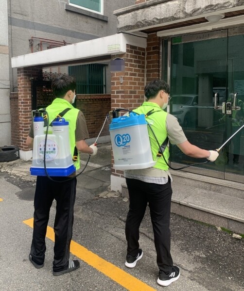 최근 코로나19 확진자가 급증하고 있어, 주민불안을 해소하고자 동 단체원들은 자발적으로 방역소독에 앞장섰다.