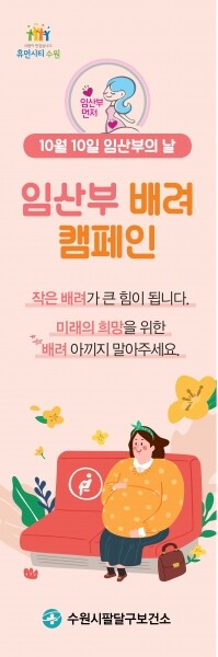 수원시 보건소 관계자는 “이번 캠페인이 임신·출산에 친화적인 환경과 임산부들을 배려하는 사회 분위기를 만드는 데 도움이 되길 바란다”고 말했다.
