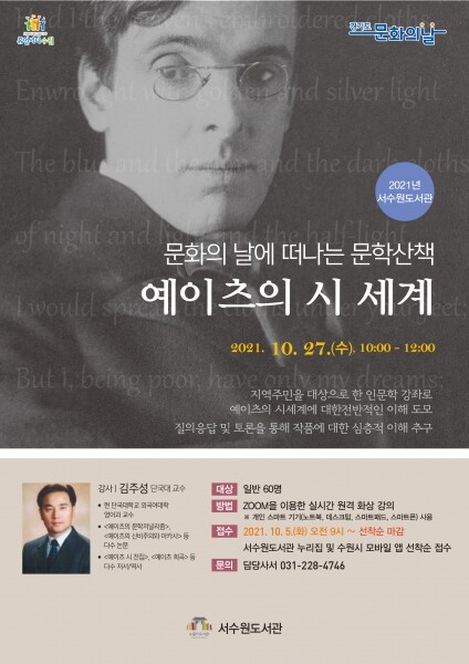 10월에는 ‘예이츠의 시 세계’를 주제로 ‘예이츠의 문학저널리즘’, ‘예이츠의 신비주의와 아카사’ 등 논문을 쓴 단국대학교 영어과 김주성 교수가 강의한다.