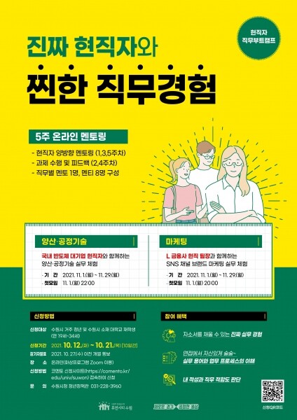 수원시, 21일까지‘진짜 현직자와 찐한 직무경험’참여자 모집