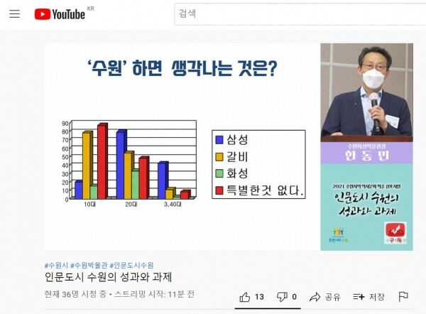 비대면 방식으로 진행된 이날 심포지엄은 수원시 공식 유튜브 채널에서 생중계했다.