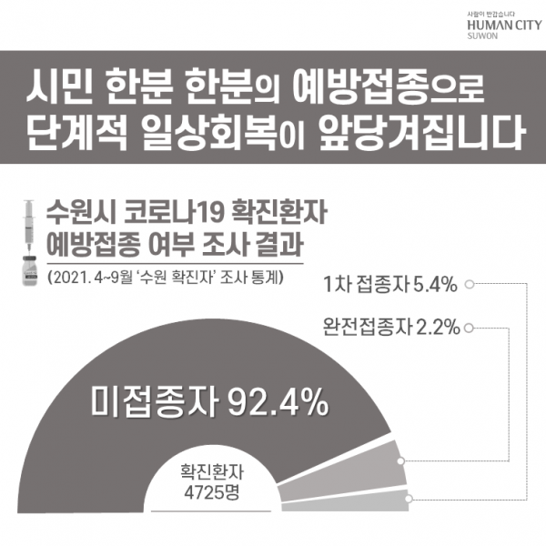 올해 4~9월 ‘수원 확진자’ 중 92.4%는 백신 미접종자