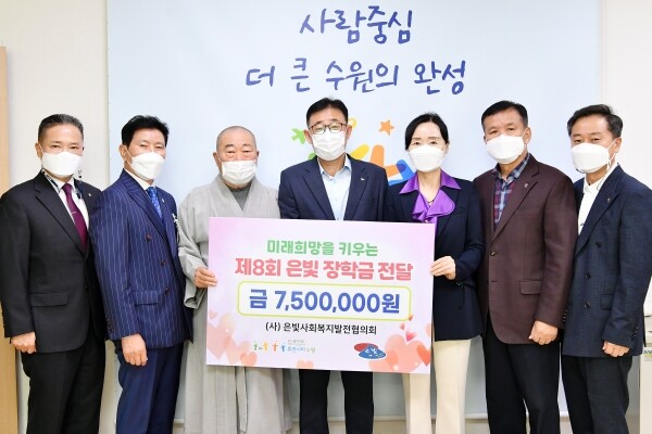 ㈔은빛사회복지발전협의회는 27일 오전 10시 수원시청 복지여성국장 집무실을 방문해 취약계층 학생들을 위한 장학금을 전달했다.