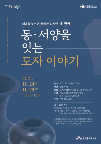 수강생 50명을 선착순으로 모집하는데, 수원시도서관 모바일앱이나 광교홍재도서관 홈페이지에서 신청할 수 있다.